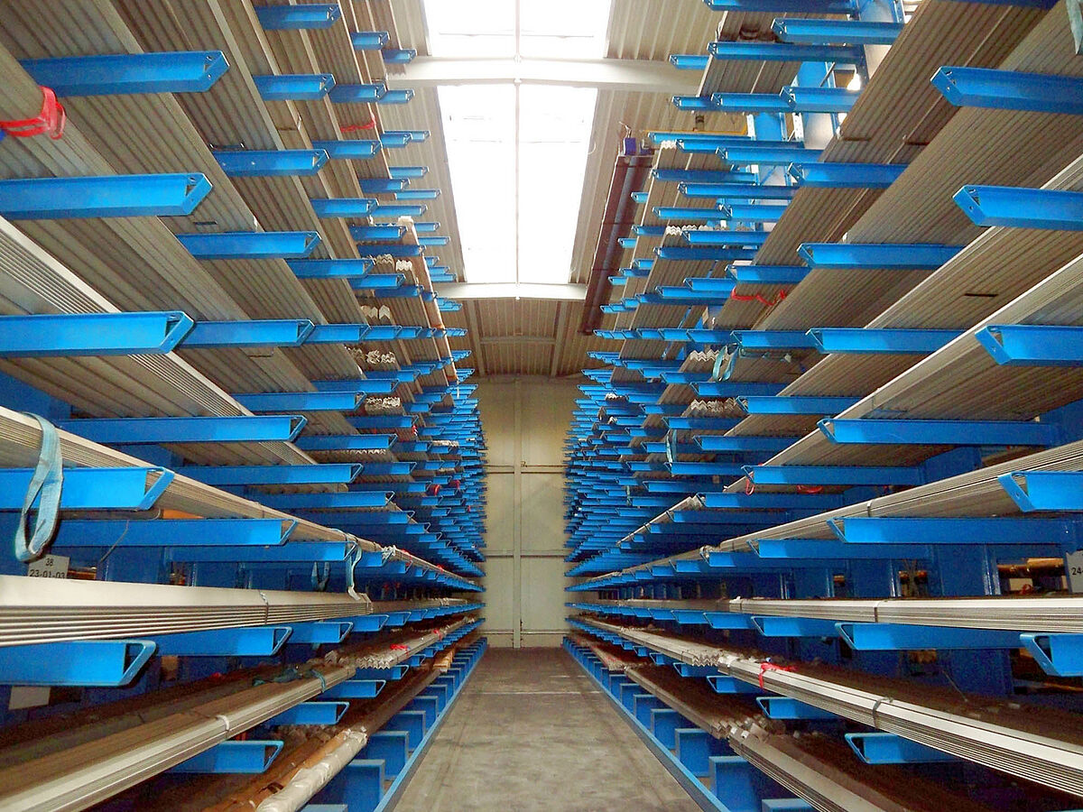 A megoldás egy 7,50 m magas, az 1.250 mm hosszúságú konzolonként 1.200 kg teherbírású, egymás fölött 14 raksíkkal rendelkező konzolos polcrendszer volt