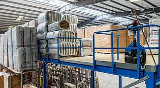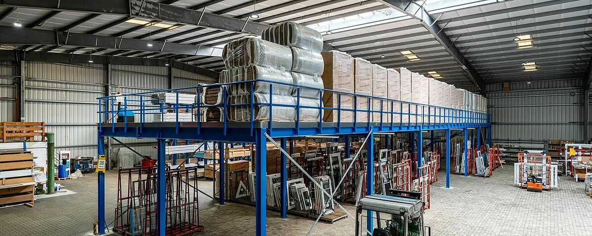 A FRIES családi vállalkozás, Németország egyik vezető fa- és padlóanyag-nagykereskedője, a szó szoros értelmében szintet lépett kieli központjában: Tároló galéria beépítésével a vállalat most már teljes mértékben ki tudja használni meglévő csarnoka belmagasságát. A második szinten, 3,8 m magasan, körülbelül 270 négyzetméteres hasznos felületet alakítottak ki, ahol a szigetelőanyagot tartalmazó nagyméretű raklapokat tömbökben tárolják. A galéria alatti új munkaterület így szükségtelenné tette egy további csarnok megépítését.