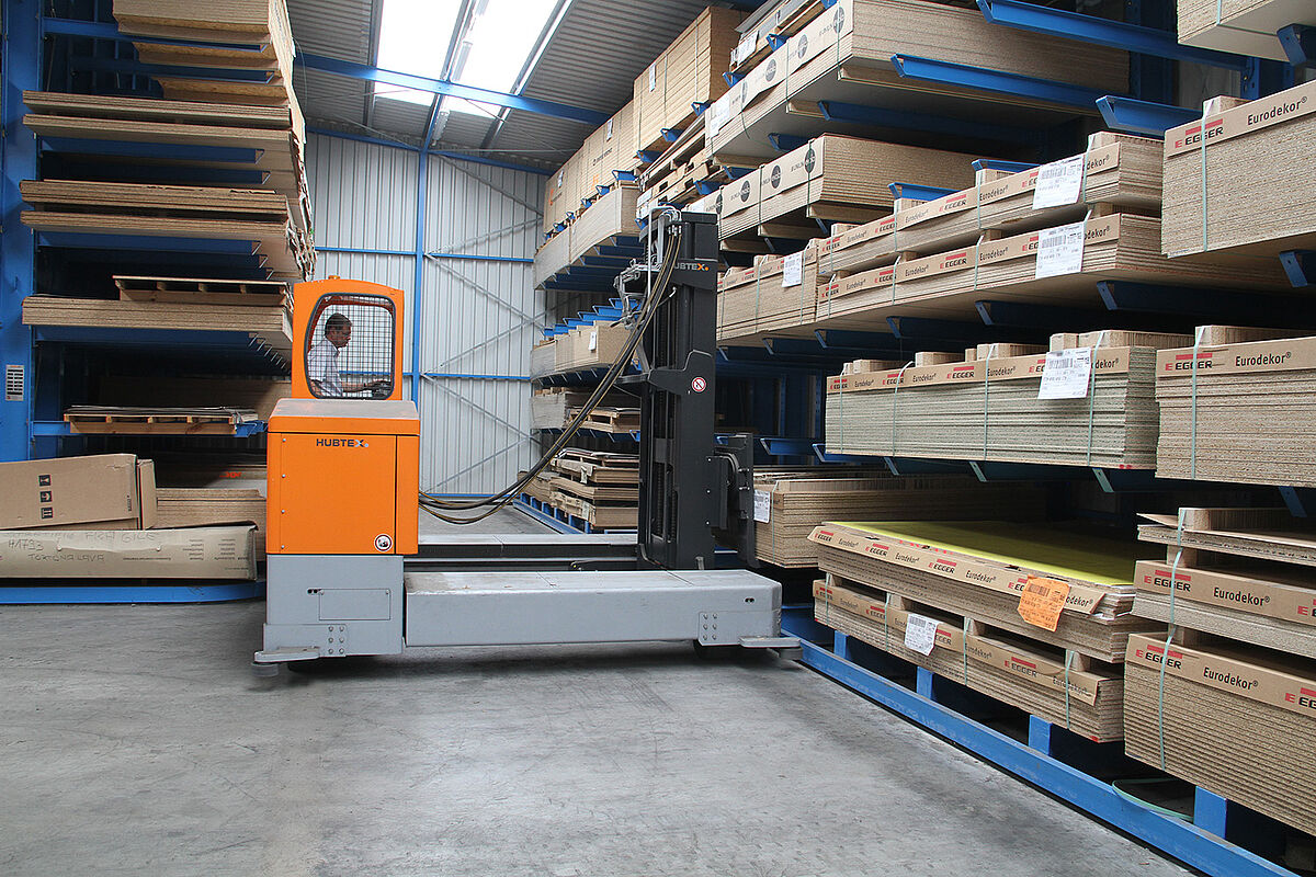 Így épült meg a 38 m hosszú csarnok, amelynek külső falait egy-egy egyoldalas karos állvány alkotja. A két egyoldalas állvány közé egy kétoldalas karos állványt is elhelyeztek. A vezetősínek lehetővé teszik a keskenyfolyosós kialakítást, többutas oldalvillás targonca használatával. Egyedi kialakítású, 5,5 m, 6,3 m és 7,1 m magas állványrendszerével a csarnok optimálisan illeszkedik környezetéhez. Az 1850 mm hosszú karok egyenként 600 kg terhet bírnak. A karok csavarozás vagy hegesztés helyett befüggesztéssel csatlakoznak az állványok 100 milliméteres raszteréhez. Ezáltal ütés esetén el tudnak hajolni.
